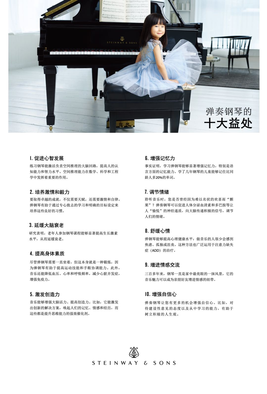 弹奏钢琴让您有更多的机会增强自信心。比如,对待建设性意见的态度以及从中学习的能力,有助于树立积极的人生观。