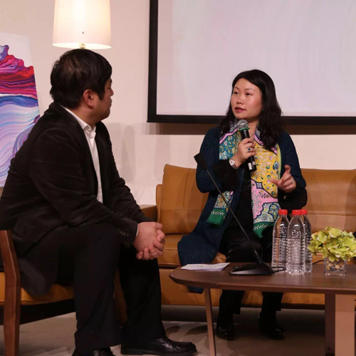 施坦威钢琴亚太区副总裁兼中国区总裁位炜女士和乐评人柯辉先生在现场交流