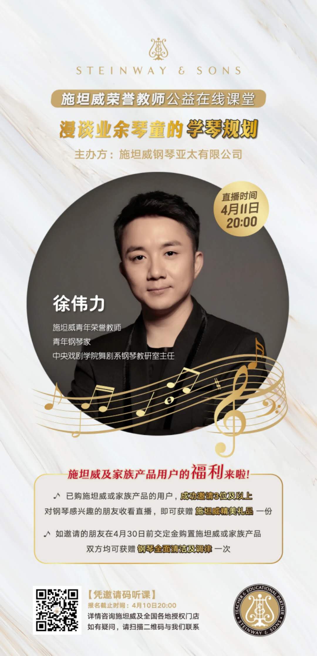 本次直播凭邀请码观看,详情咨询施坦威及全国各地授权门店