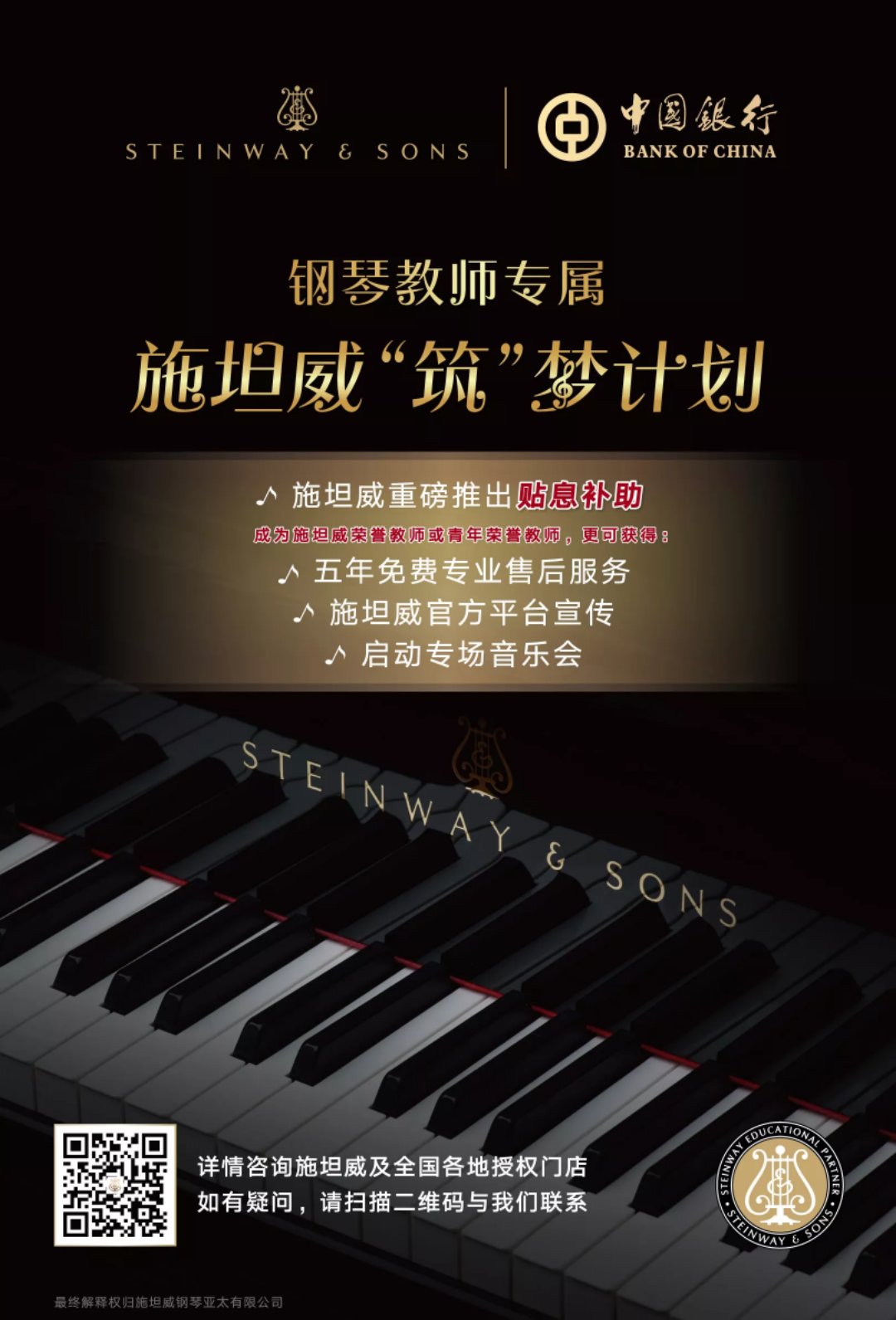 施坦威重磅推出贴息补助,为钢琴教师们购琴提供资金支持;