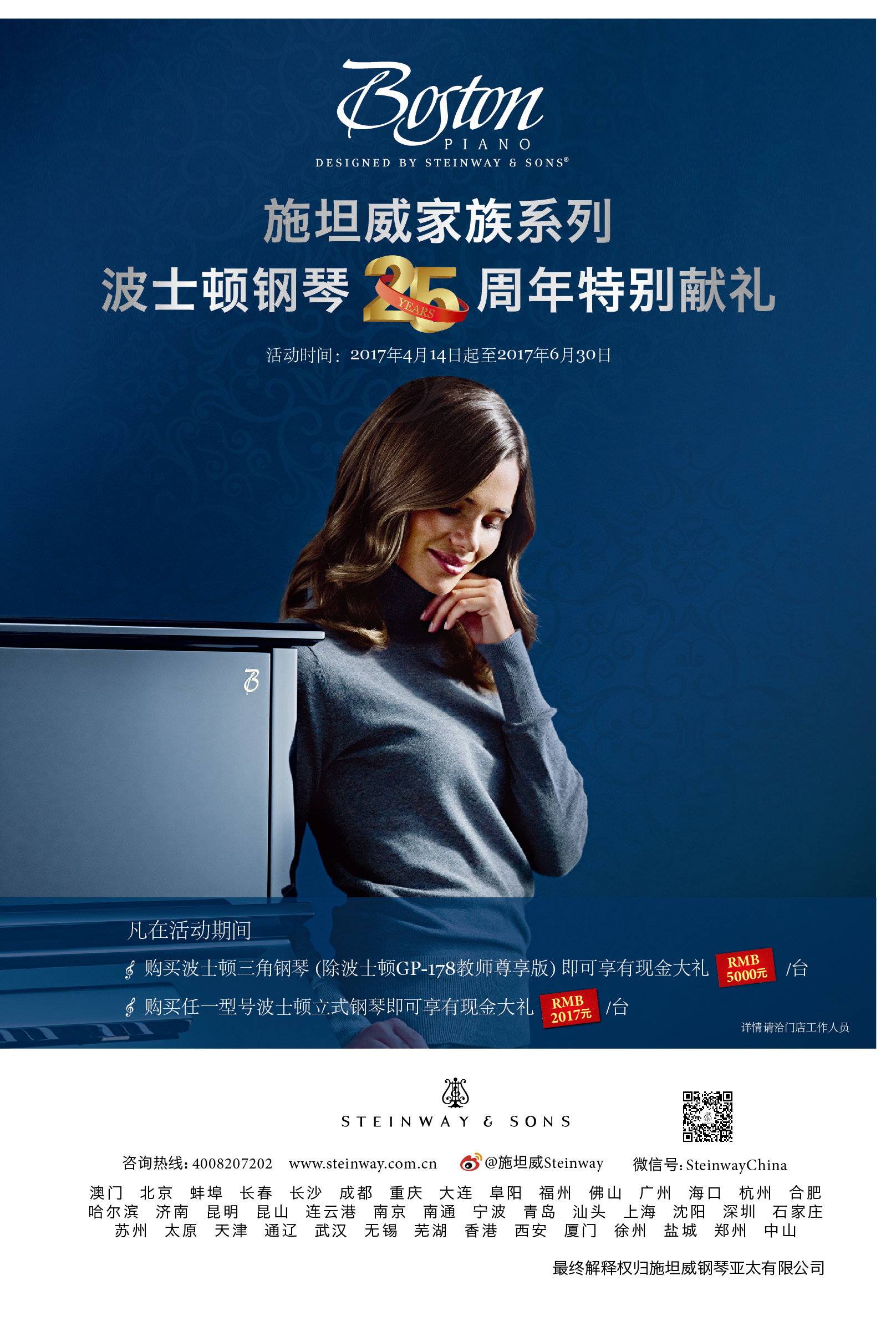 二十五周年庆 | 施坦威家族系列波士顿钢琴