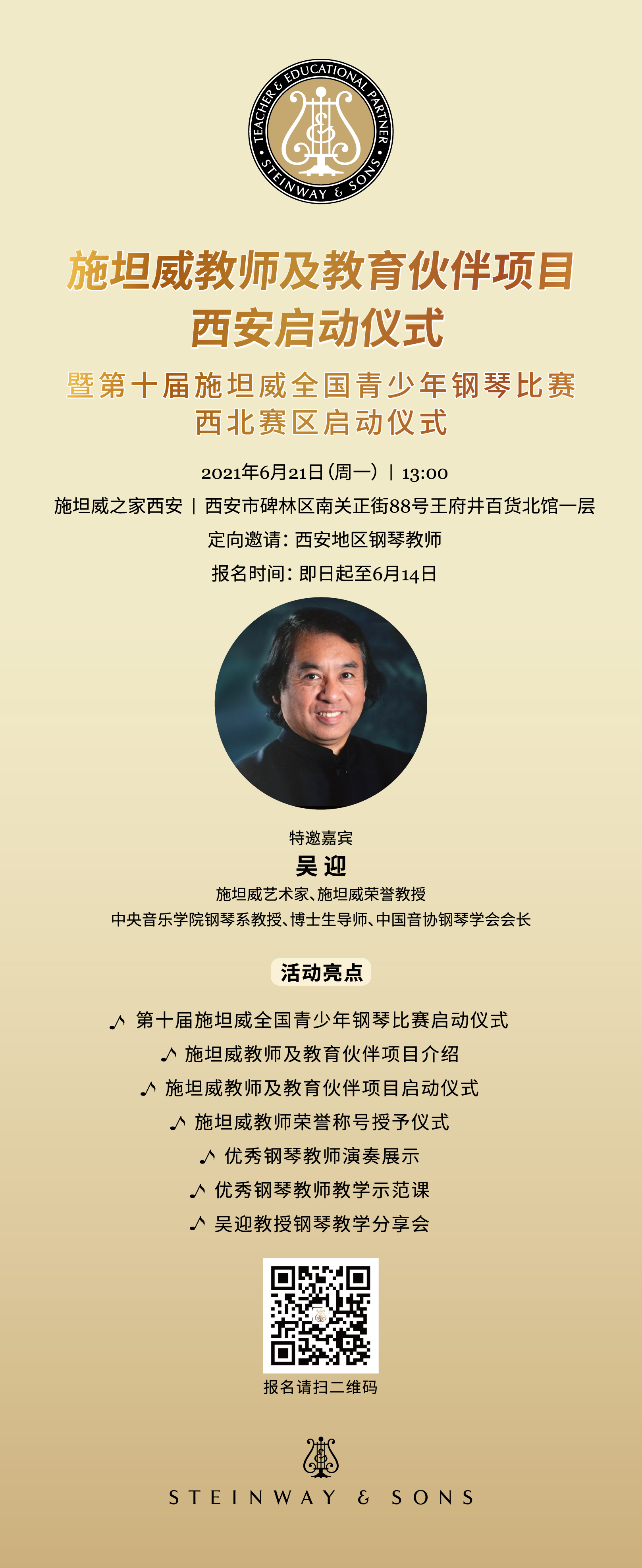 活动地址:施坦威之家西安 | 西安市碑林区南关正街88号王府井百货北馆一层