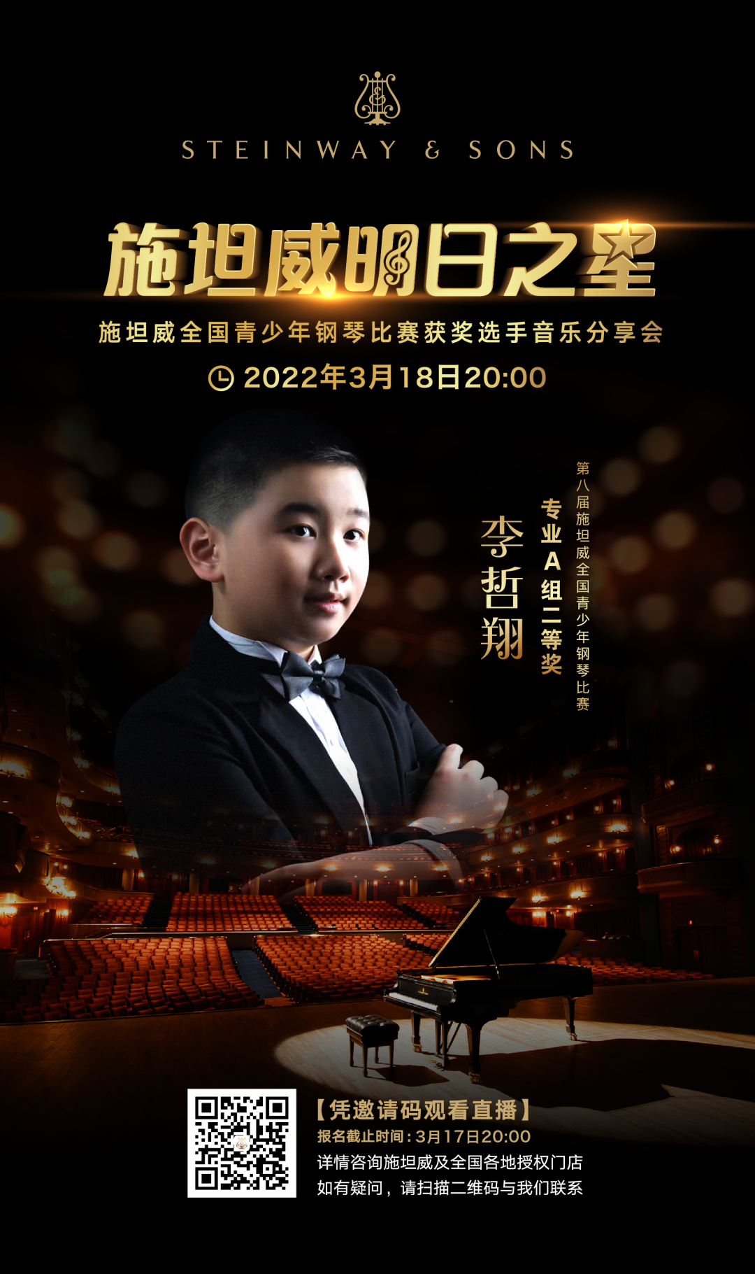 直播预告 | 施坦威全国青少年钢琴比赛获奖选手李哲翔音乐分享会