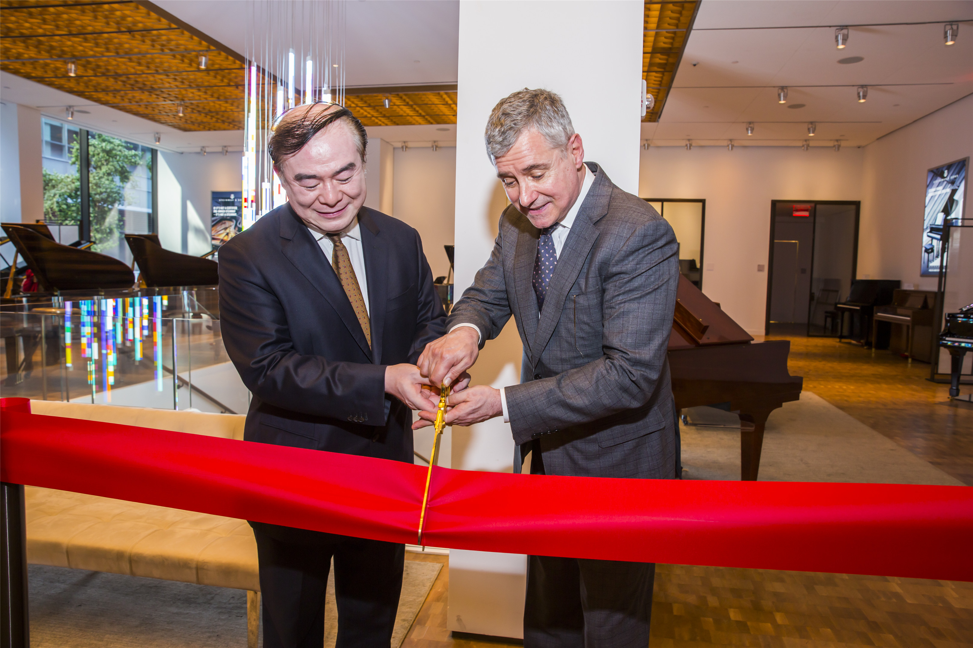 施坦威全球首席行政官罗恩·罗斯彼(Ron Losby)先生(右)和中央音乐学院院长俞峰先生(左)共同剪彩