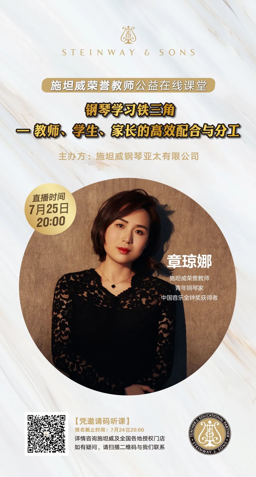 施坦威荣誉教师公益在线课堂 | 钢琴学习铁三角—教师、学生、家长的高效配合与分工