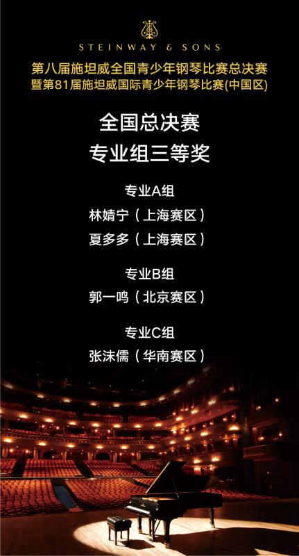 公告 | 第八届施坦威全国青少年钢琴比赛总决赛获奖名单