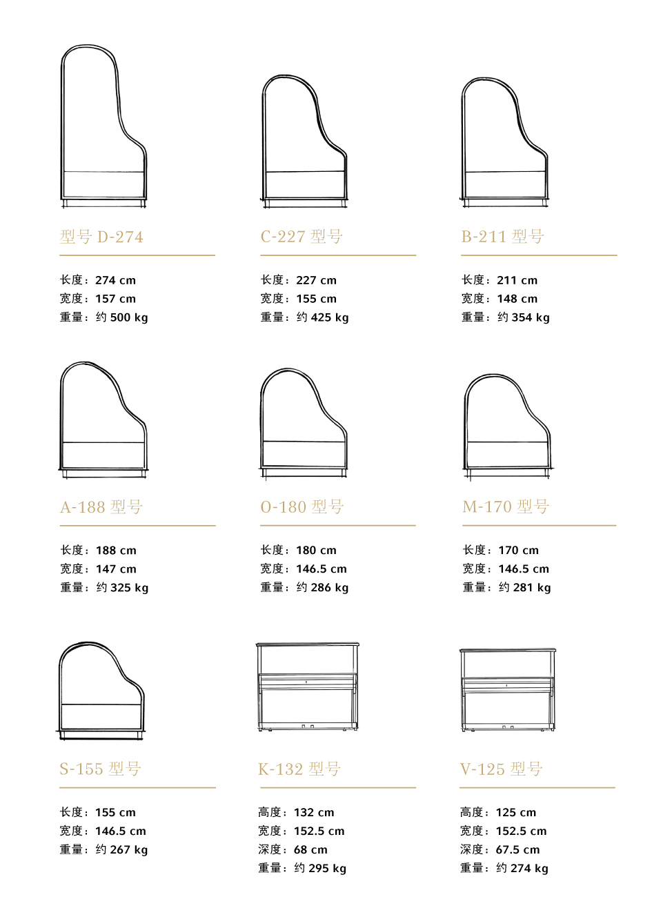 施坦威同样提供多种产品型号满足不同层次消费需求: