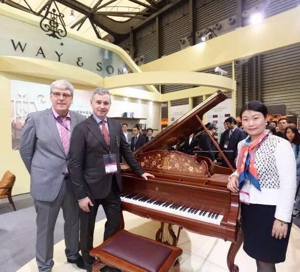 施坦威钢琴公司首席执行官罗恩 • 罗斯彼(Ron Losby)先生、施坦威钢琴亚太区总裁维尔纳 • 胡斯曼(Werner Husmann)先生、施坦威钢琴亚太区副总裁兼中国区总裁位炜女士共同为全球典藏版系列“花语”钢琴揭幕