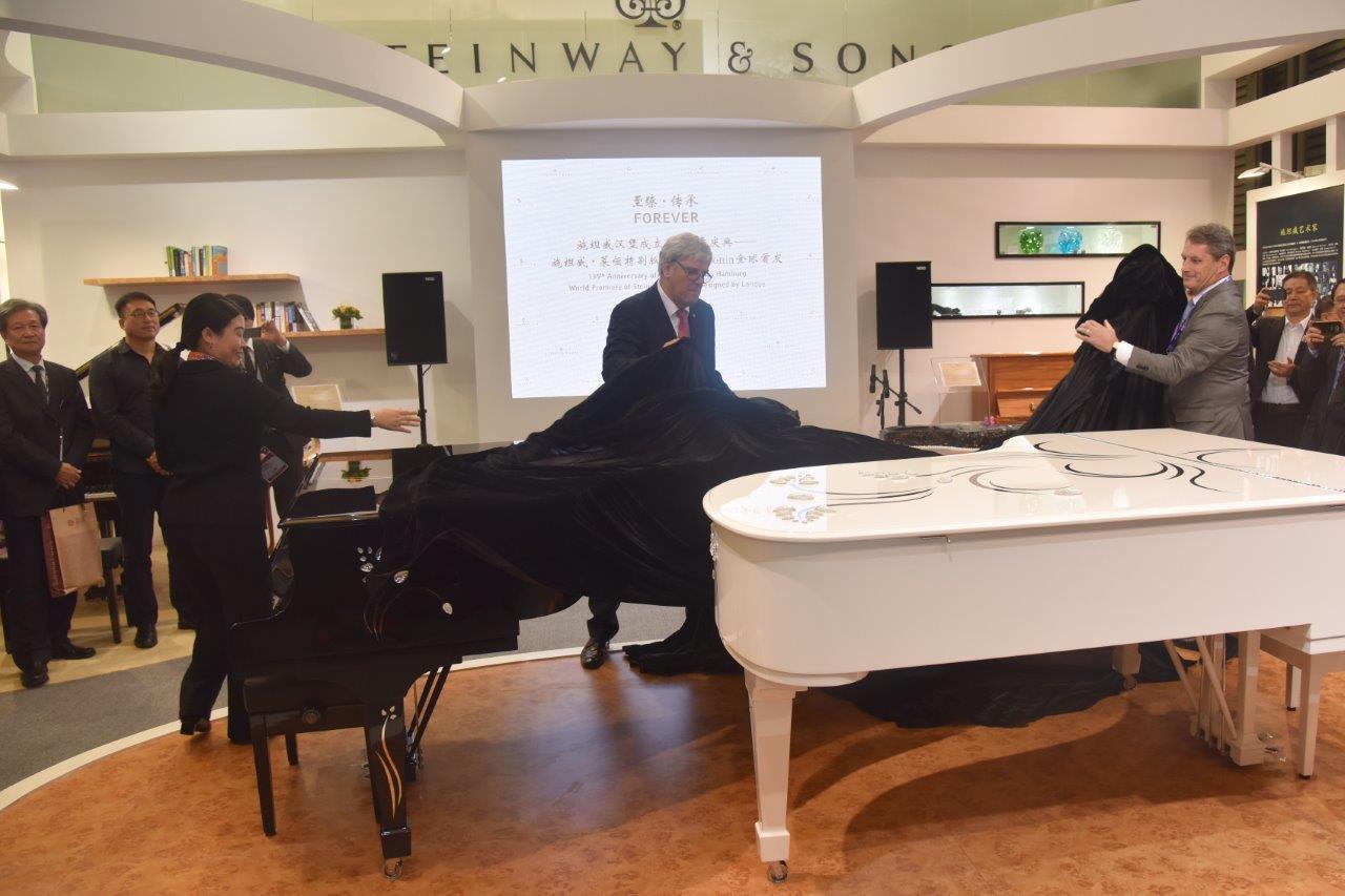 在过去的100多年里,世界上最富才华的设计师和艺术家们与施坦威携手合作,创造了一系列独一无二、非同寻常的钢琴。在2015年中国(上海)国际乐器展200多平米的施坦威展位现场,施坦威携黑白两架万众期待的施坦威•莱俪特别版钢琴Heliconia首次亮相。施坦威全球董事长兼首席执行官斯威尼先生、施坦威亚太区总裁胡斯曼先生和施坦威亚太中国区总裁位炜女士为施坦威•莱俪特别版钢琴Heliconia揭幕。