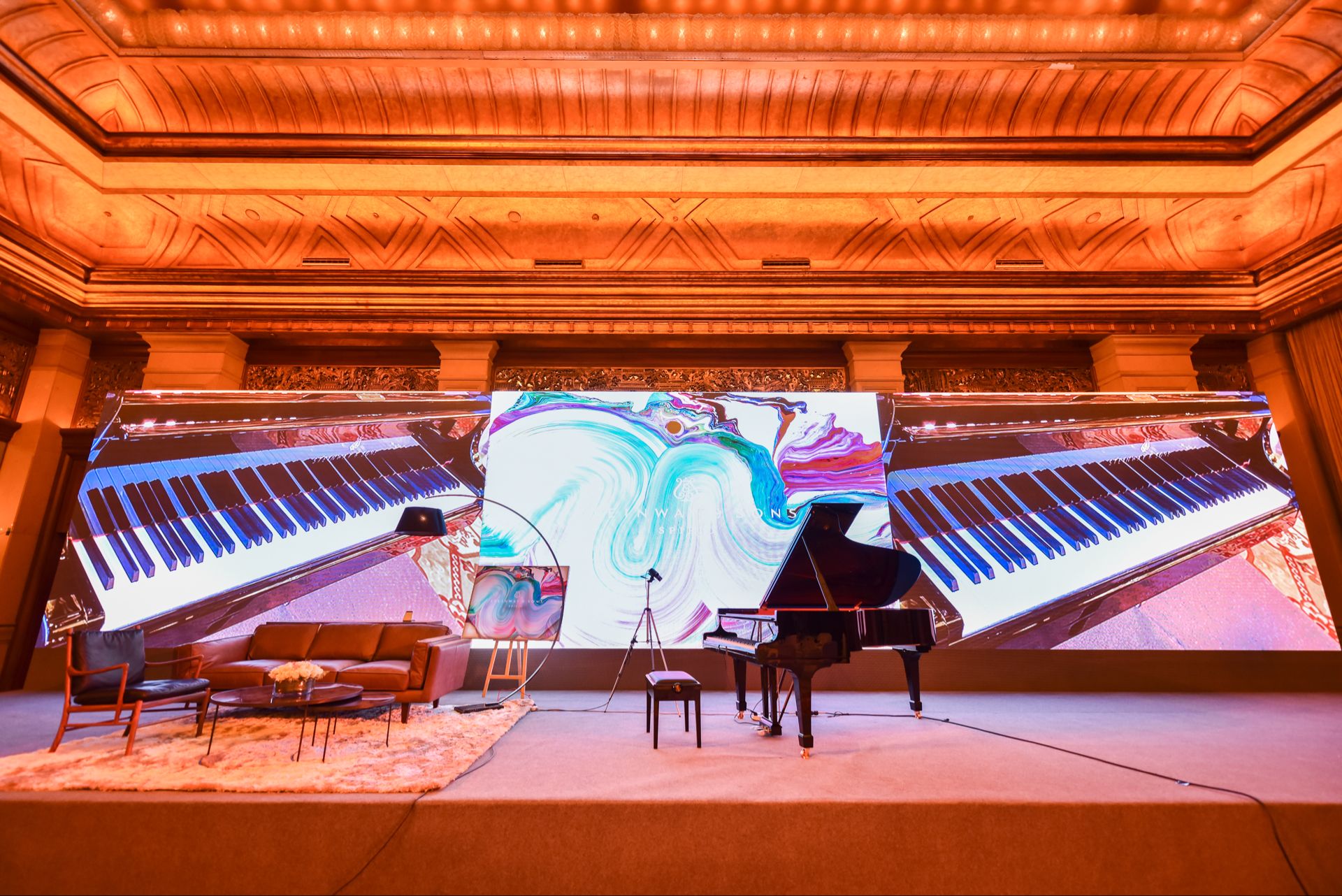舞台上耀眼的施坦威·Spirio新悦高解析度自动演奏钢琴以及品牌艺术形象画