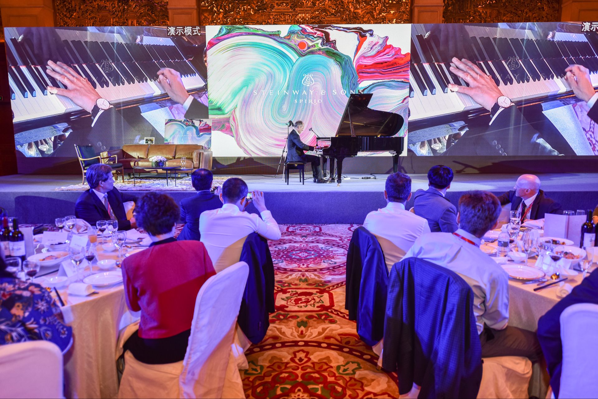 在此次会议晚宴上,施坦威正式向所有代理商揭开了施坦威·Spirio新悦高解析度自动演奏钢琴的神秘面纱,并有幸请到著名施坦威艺术家尤雅·温特先生莅临现场倾情献奏。这位对音乐天马星空、不拘一格,对观众真诚幽默、互动频频的艺术家在现场的完美演绎以及与Spirio的“四手联弹”给在场所有的嘉宾留下了深刻的印象。