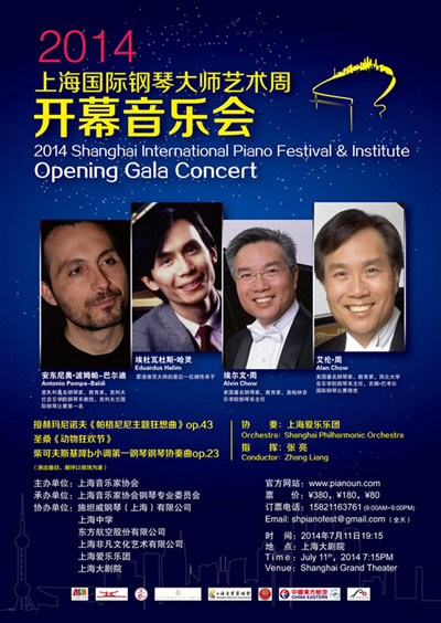 由上海音乐家协会主办、上海音乐家协会钢琴专业委员会承办,并由施坦威钢琴(上海)有限公司参与协办的“2014上海国际钢琴大师艺术周”将于2014年7月11日—17日分别在上海大剧院和上海中学举办。